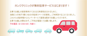 ホンジクリニックが無料駐車サービスはじまります!